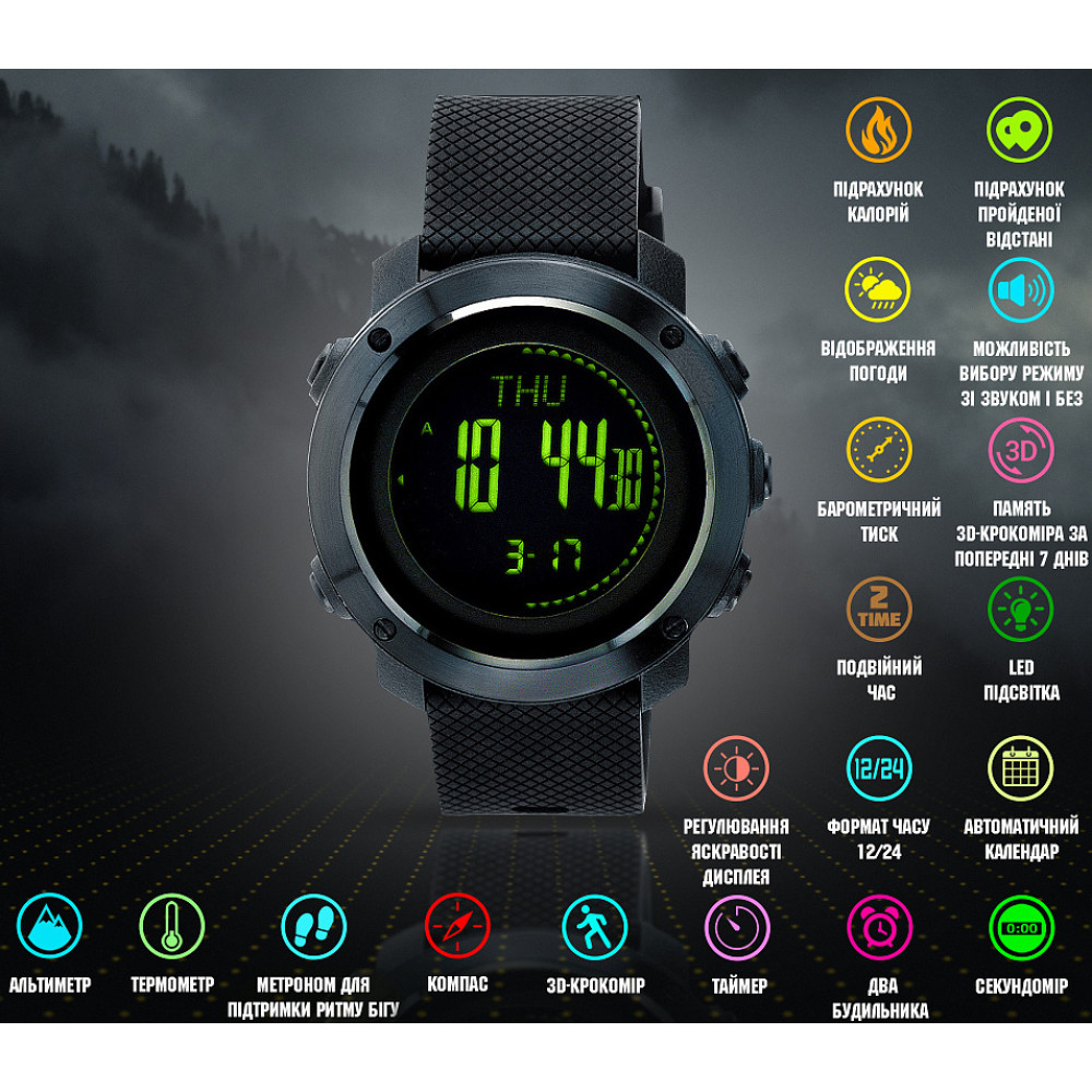 Годинник Тактичний Мультифункціональний Outdoor Black