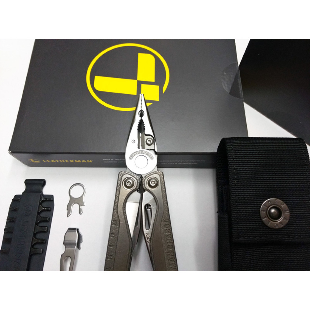 Цей повнорозмірний мультитул з нержавіючої сталі має титанові рукояті, ніж з високо вуглецевої сталі S30V, крім стандартного набору інструментів присутній обтиск капсулів і стропоріз, оснащений тримачем змінних біт для розширення функціональних можливостей, а фіксація всіх інструментів в робочому положенні робить його більш безпечним.