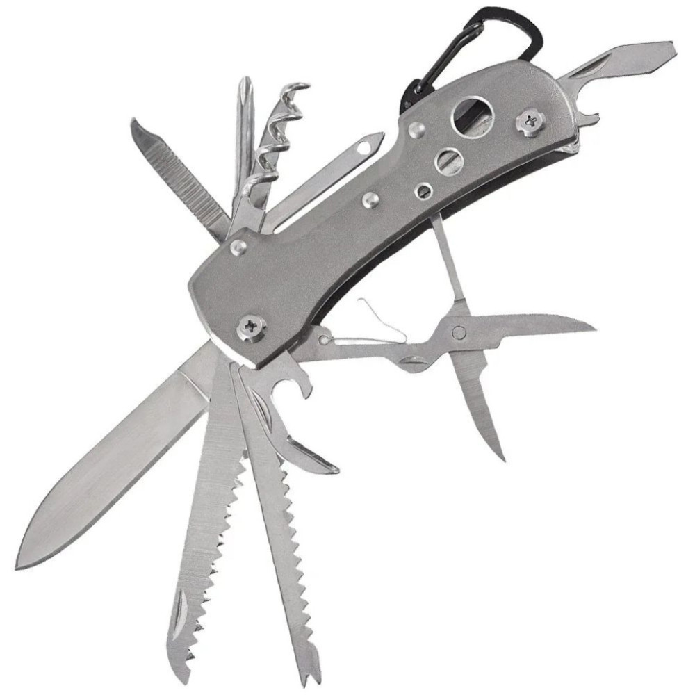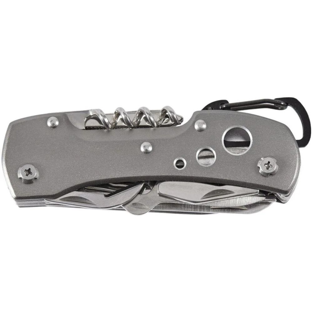 Інструменти виконані з нержавіючої сталі, а ергономічне руків’я з алюмінію. Завдяки невеликим розмірам та вазі, його можна носити в кишені, в сумці або рюкзаку і він завжди буде під рукою.