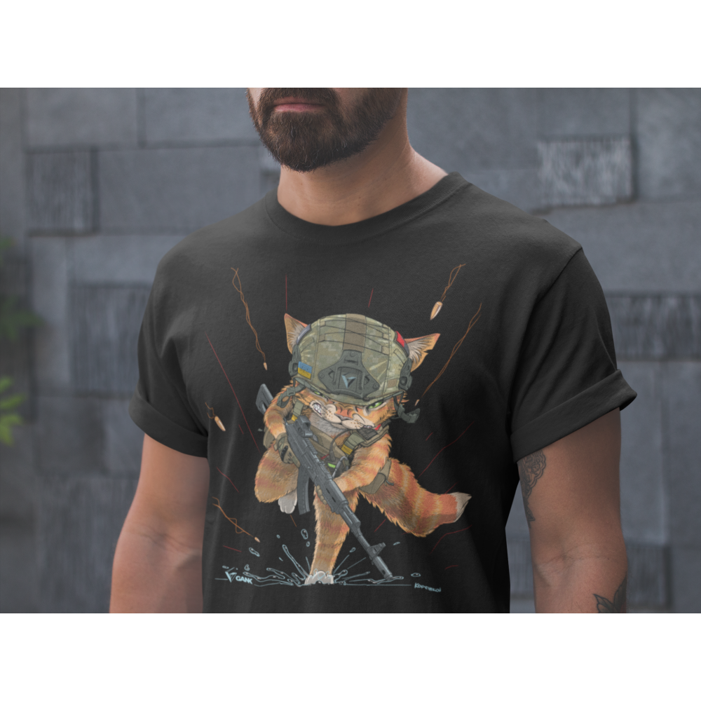 Широка розмірна сітка дозволить підібрати ідеальний варіант під будь-який тип статури. У такій патріотичній футболці з принтом Котан з Калашматом ви будете почуватися впевнено та стильно.