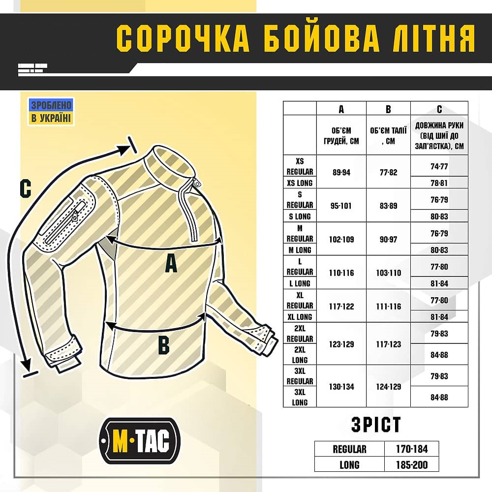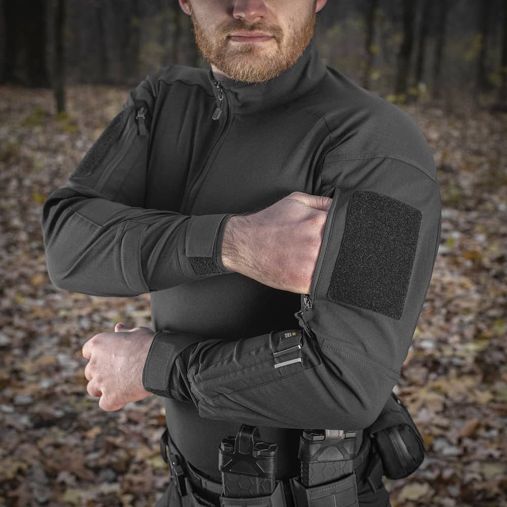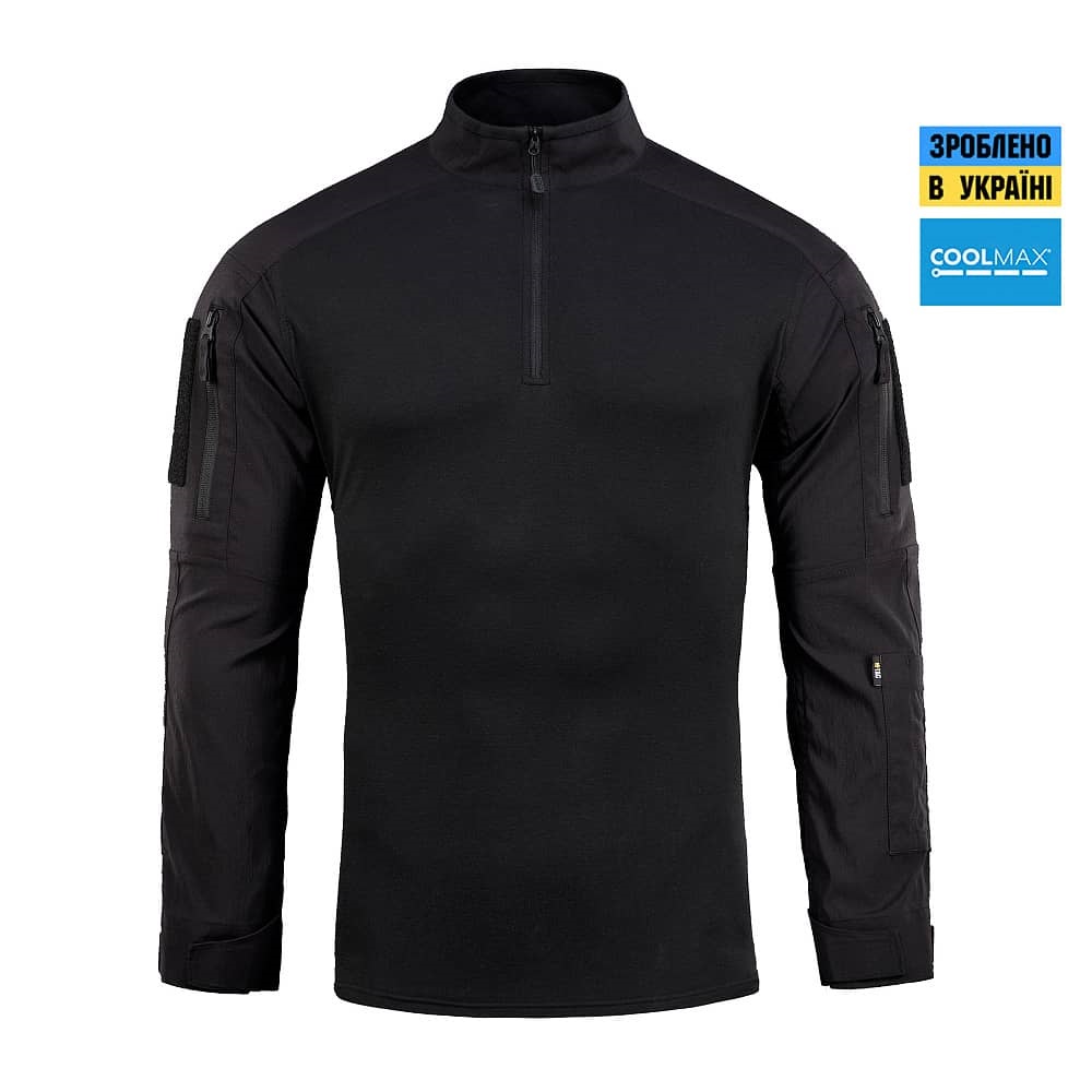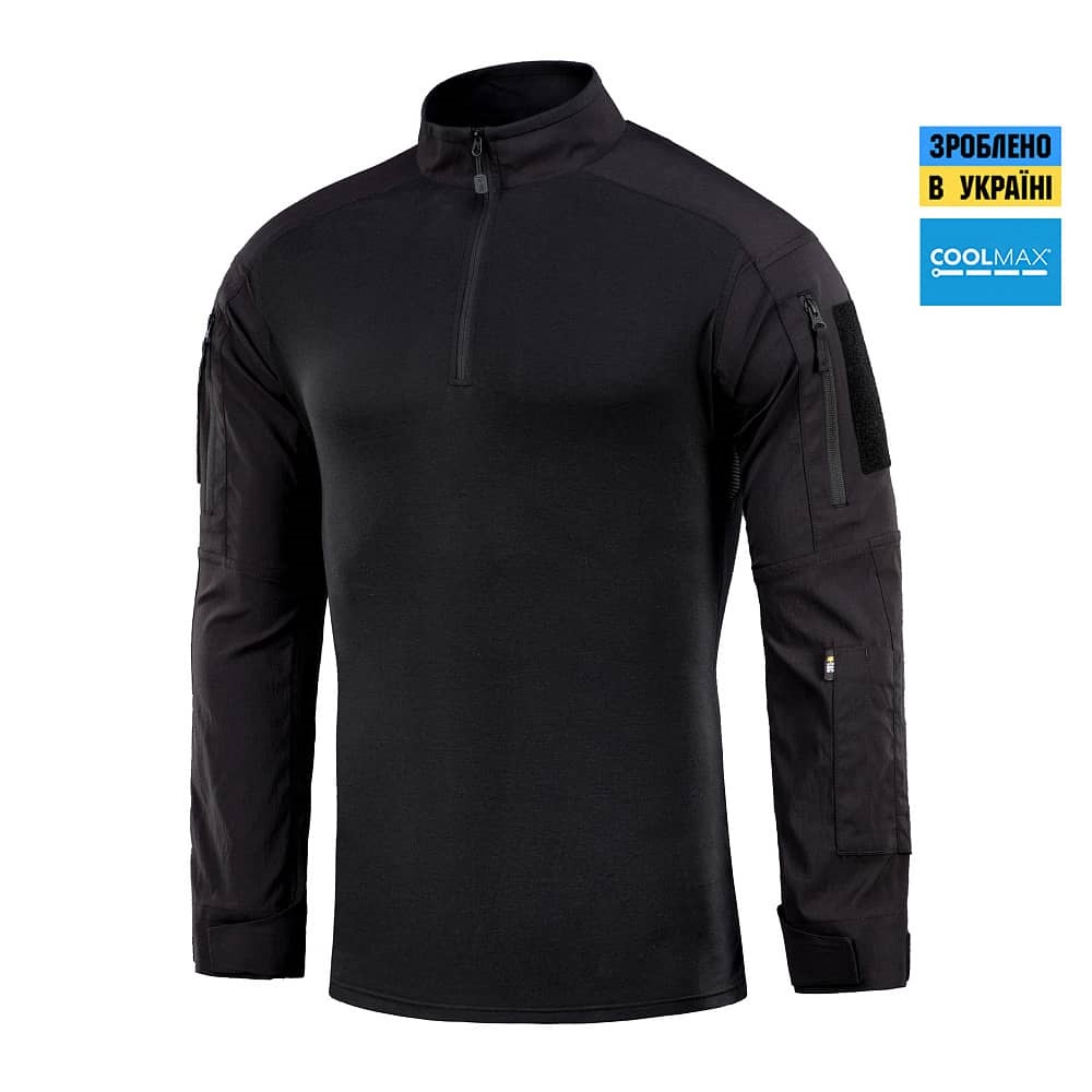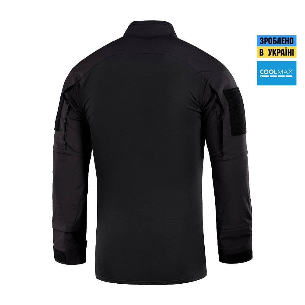 Бойова сорочка від бренду M-Tac поєднує в собі високоякісні матеріали, новітні технології виробництва, а також максимальний рівень захисту та функціоналу. Спинка і торс пошиті з нового революційного австрійського матеріалу Coolmaх®, який приємний на дотик, еластичний і забезпечує терморегуляцію тіла. Рукава виготовлені з міцної тканини Rip Stop, яка захистить від розривів та інших пошкоджень. Конструктори бренду під пахвами додали вставки з сітки для поліпшення вентиляції та відводу вологи. Також дизайнери передбачили нарукавні кишені, відсіки для налокітників, велкро панелі для ідентифікаторів і кишені для ручок.